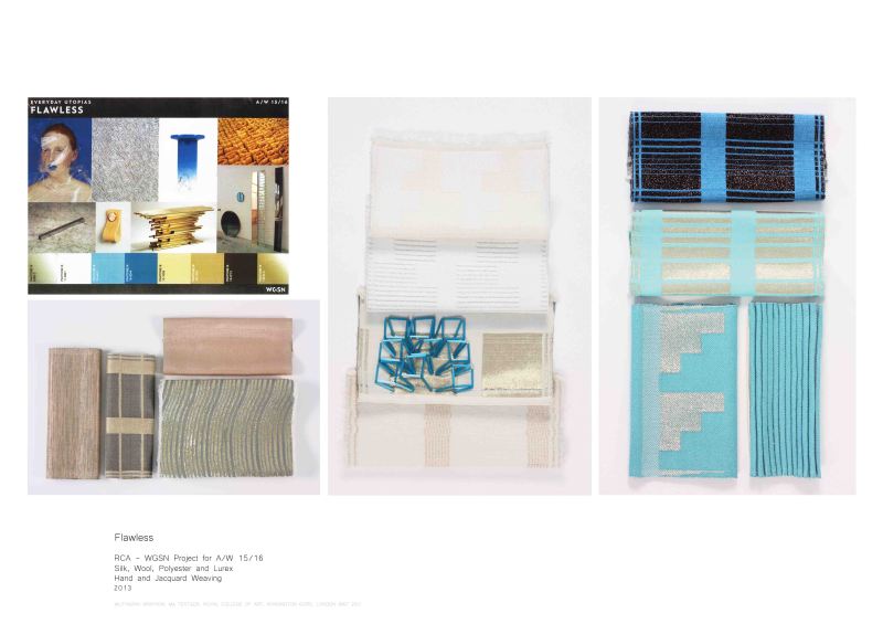 Woven textiles designed in a collaborative project between the Royal College of Art and the world’s leading trend forecaster WGSN. The theme was provided by the company and materialised into textiles.